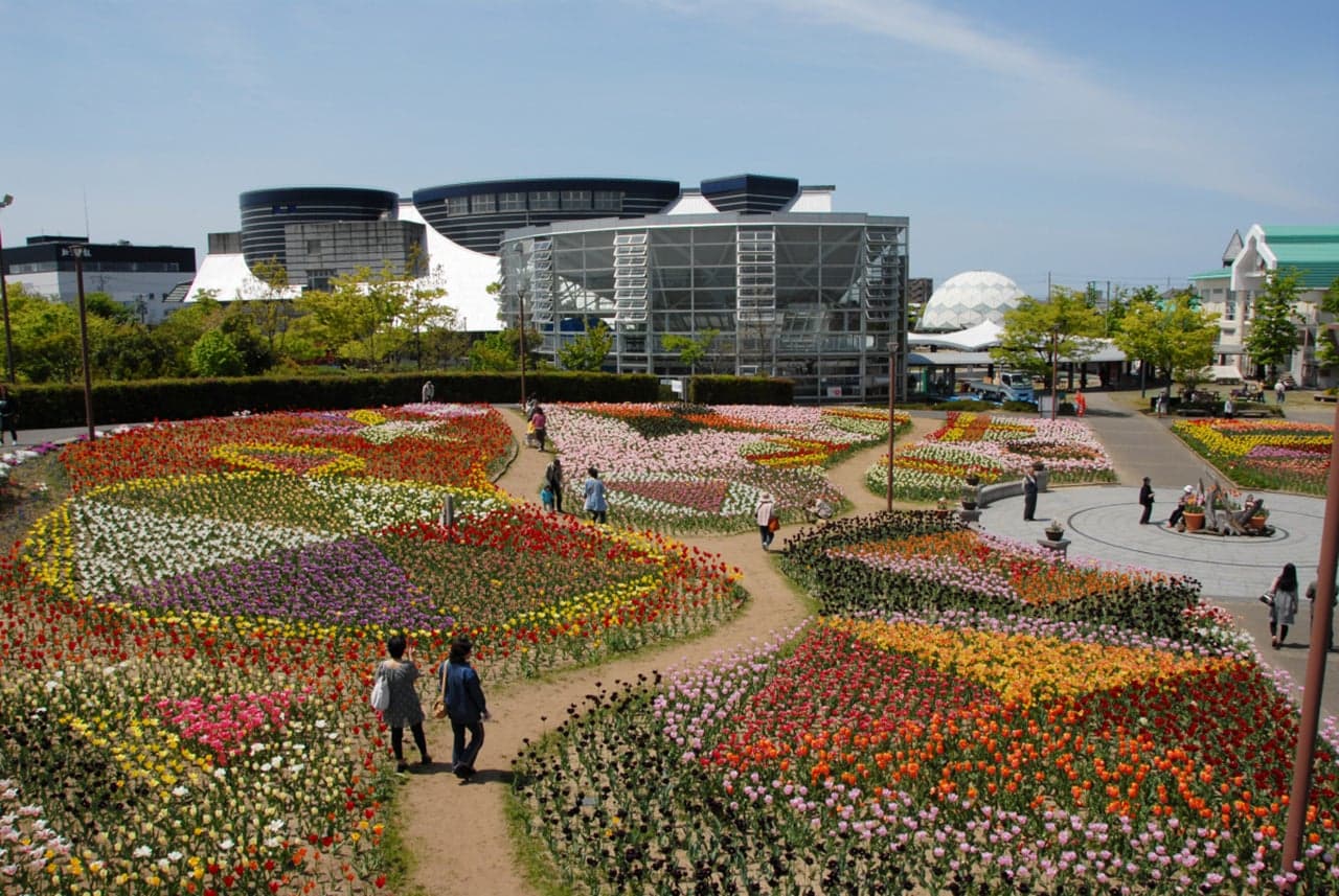 チューリップガーデンは、毎年テーマを変えて33品種・5万本のチューリップで表現します。色とりどりの春のガーデンをお楽しみいただけます。