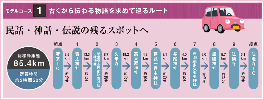 - 法隆寺ICより 車 約10分(約5.0km) 近鉄大和高田駅 タクシー約12分(約4.7km) 近鉄大和高田駅 バス 15分 竹取公園東バス停 徒歩 1分