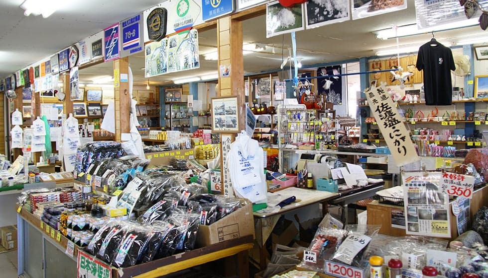 景勝地「夫婦岩」の目の前に建つドライブイン。食堂では「海鮮丼」「ブリかつ丼」など海の幸中心の食事をいただけます。佐渡ならではのお土産も充実。「イカサキ体験」も実施しており、イカサキ名人の楽しい指導が大好評。体験後は代品として、売店でも人気の「一夜干しイカ」をお土産に。お手製を希望の場合は、干しあげて後日発送も可能です。