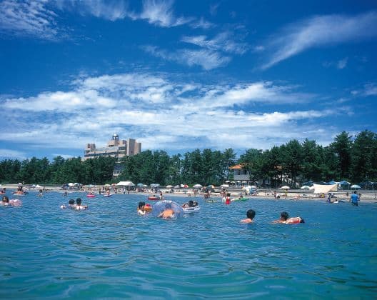 遠浅で県内有数の透明度を誇る鉢ヶ崎海岸は、「日本の渚・百選」に選定されています。夏は海水浴場として多くの人々が訪れます。付近にはケビンや野営場、オートキャンプ場、ビーチホテルなどの様々な宿泊施設や日帰り温泉施設、珠洲焼資料館などもあります。