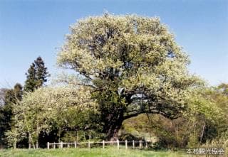 小浜城址の丘の東の屋根の一角に生育する「ヤマナシ」の大木。かつての伊達政宗の家臣、片倉小十郎の屋敷跡に植わっており、地区名にその証を残す。地上3mあたりから幹は数本の巨枝に分かれ、樹冠は4方に13m前後に広がっている。
