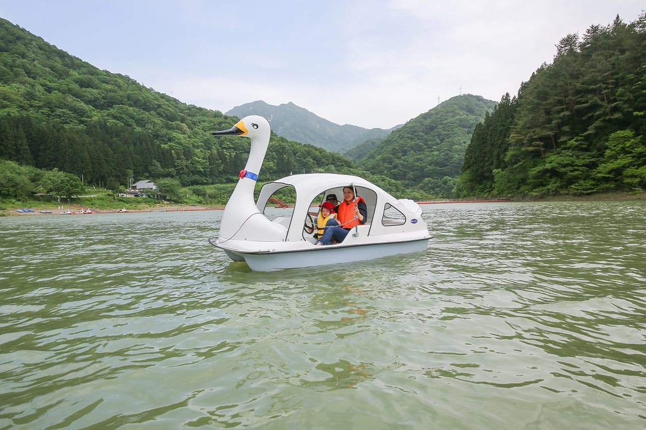 ●主な施設:管理棟(レンタル・売店)、トイレ(3ヵ所)、炊事場、シャワー室、コインランドリー、貸ボート、ファイアースペース、浮き桟橋、東屋、スワンボート、手漕ぎボート