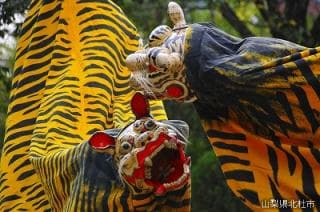 「獅子」ではなく「虎」の面をつけて舞う。無病息災などを祈願した舞いで、区内を回る。