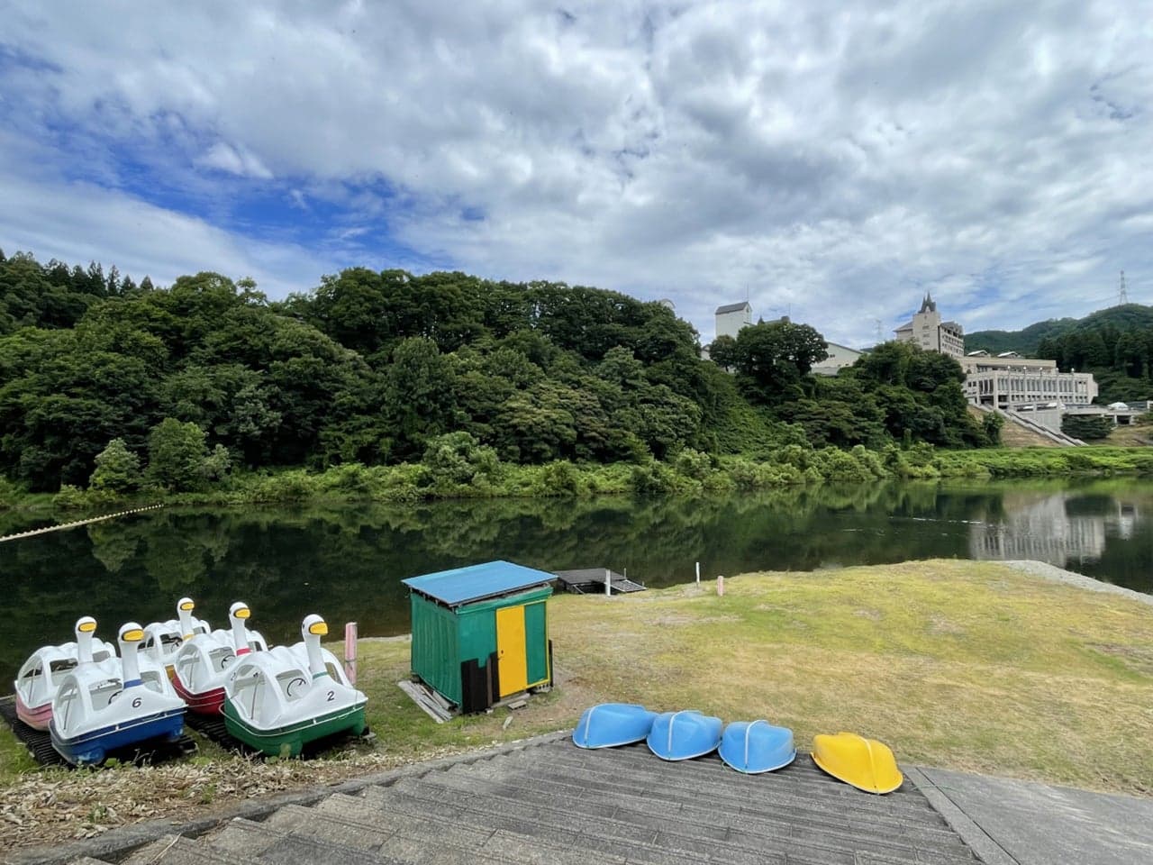 胎内フィッシングパークは胎内川の湖畔にある釣り堀公園で、ニジマス、ヤマメ、イワナ