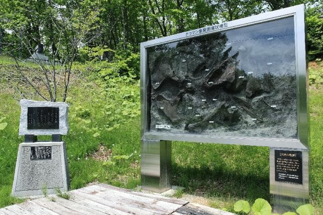 昭和44年に発見されたナウマン象の臼歯を始まりとして2年ほど続いた発掘作業で約1体分のナウマン象化石が発見されたことで、世紀の発見といわれたこの発掘を記念した碑で、発掘の際の模型等も展示してある。
