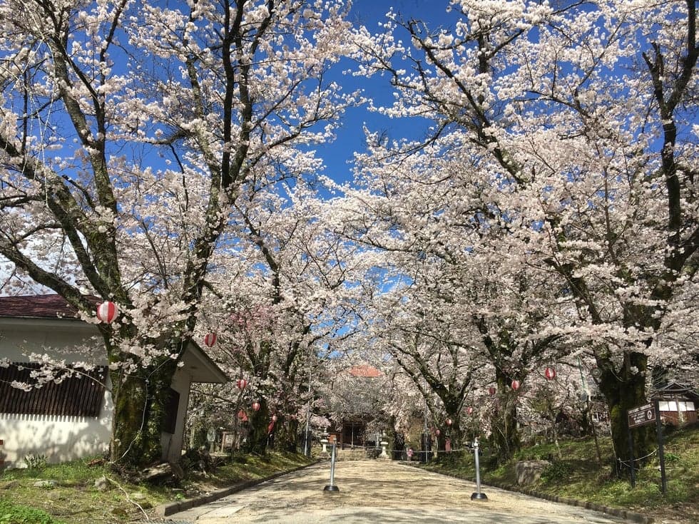 源頼朝公寄進の言い伝えを持つヒガンザクラの古木です。見事な樹相に繊細な花が流れ落ちるように咲きます。