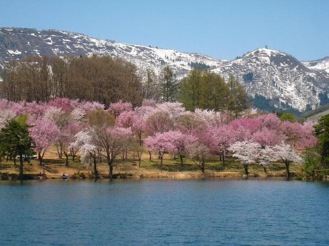 長峰スポーツ公園の針湖池沿いに桜が咲き誇ります。