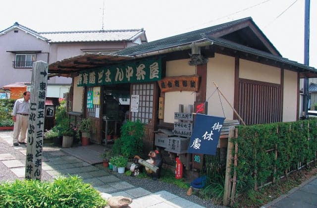 袋井宿の東の入口に、初代広重の描いた「東海道五十三次袋井出茶屋之図」をモチーフに建てられた茶屋。市民やウオーカーの憩いの場となっています。茶屋内では地元の方々による湯茶等のもてなしをしています。