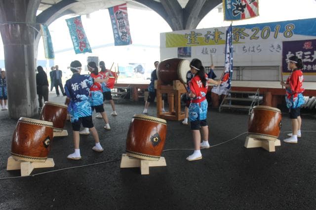 天保年間、島が大変な不漁続きにあったとき、何人かの漁師が島の弁天岬でかがり火を焚き、太鼓を打ち鳴らし、大海原の神々に祈りを捧げ、大漁を祈願したという故事にもとづいている。ハッピ姿の6人が6個の太鼓を静・動の現代的リズムに変え、唄いあげるもの。
