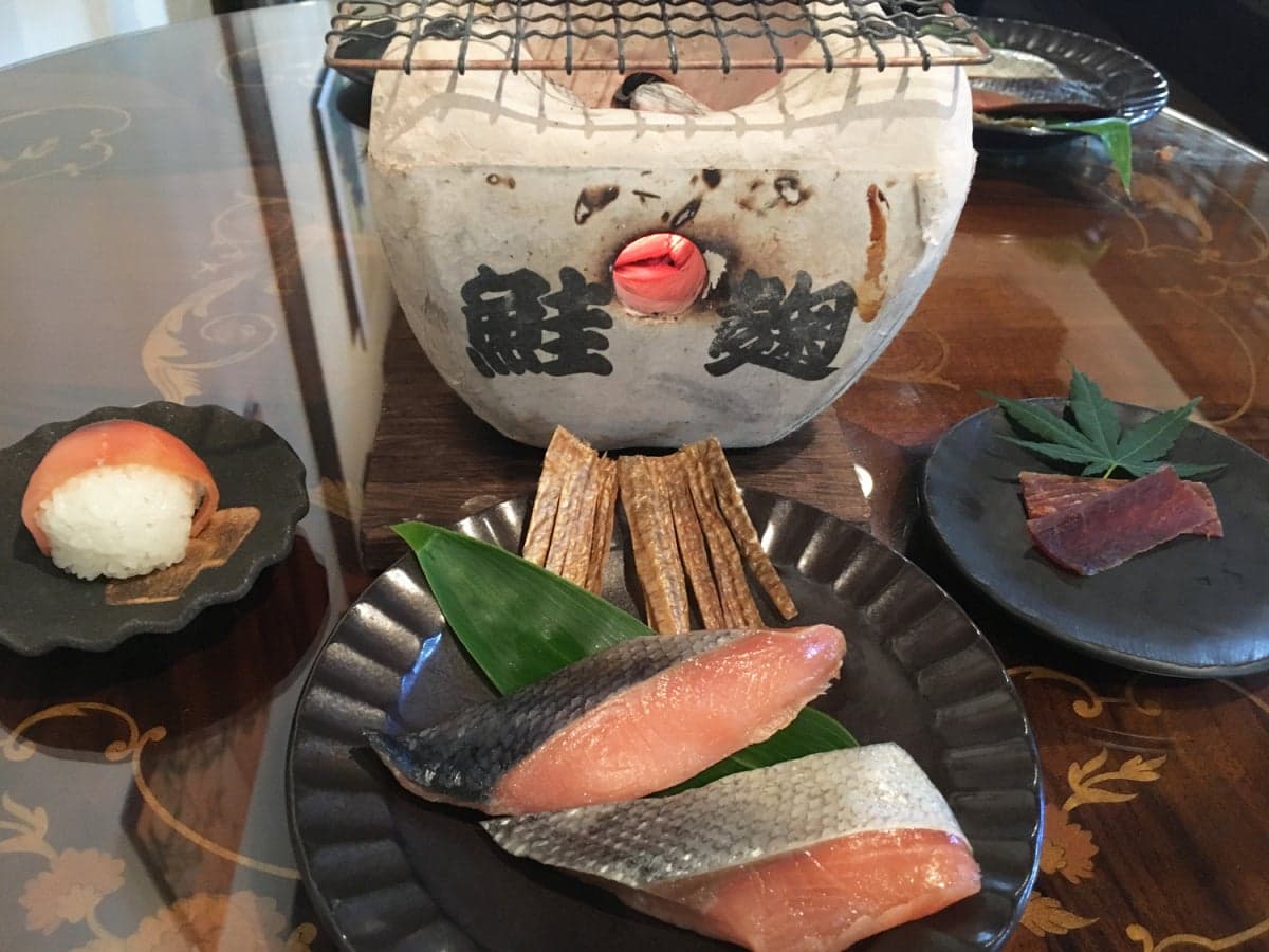 1000年続く鮭のまち・村上市初の鮭料理専門店です。松尾芭蕉が2泊した由緒ある空間で、現在の建物は国の有形文化財に指定されています。炭火で焼いた塩引き鮭と、土鍋で炊いたこだわりの関川村産コシヒカリ。締めは村上茶を使用した出汁で鮭茶漬けで。村上ならではの鮭料理の数々をお楽しみください。