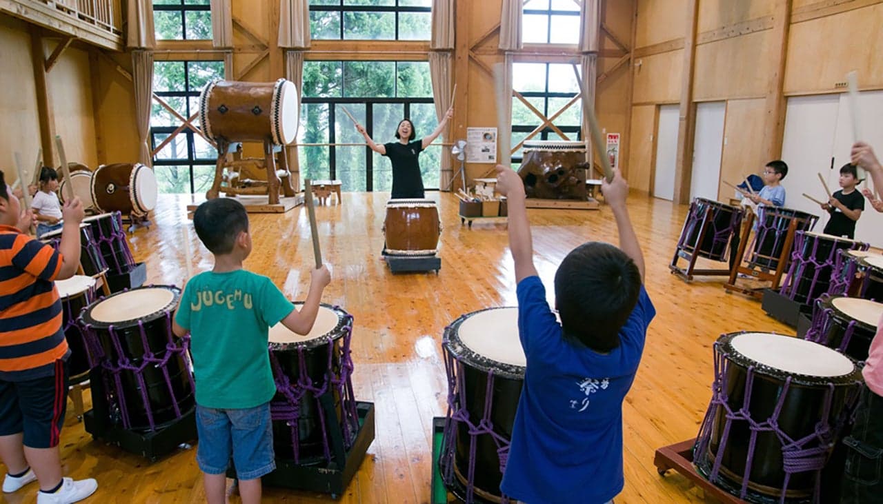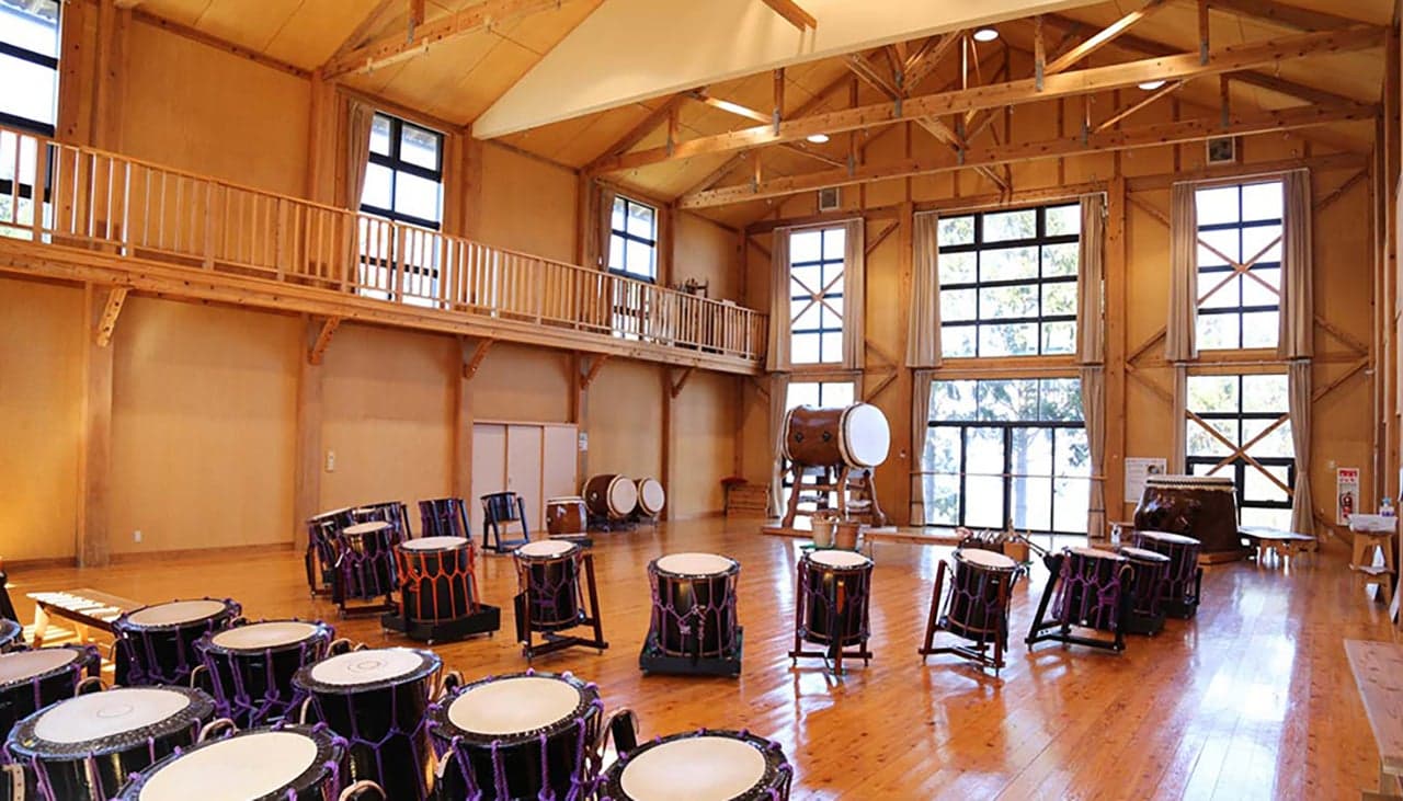 鼓童文化財団が運営する施設。「鼓童村」隣接エリアの高台にあります。佐渡産木材を使用した音響抜群のホールは、開放的なスペース。樹齢推定600年のケヤキの原木をもとに手作りしたオリジナルの大太鼓も設置されています。太鼓体験講師による太鼓指導をはじめ、多彩なプログラムを提供。ホール、展示室、和室などは貸出も行っています。