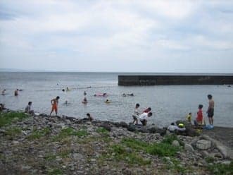 江之浦海水浴場は、江之浦漁港に隣接した小さな海水浴場です。砂浜ではありませんが、波が穏やかなので、子供と一緒に家族でのんびりという方に向いています。