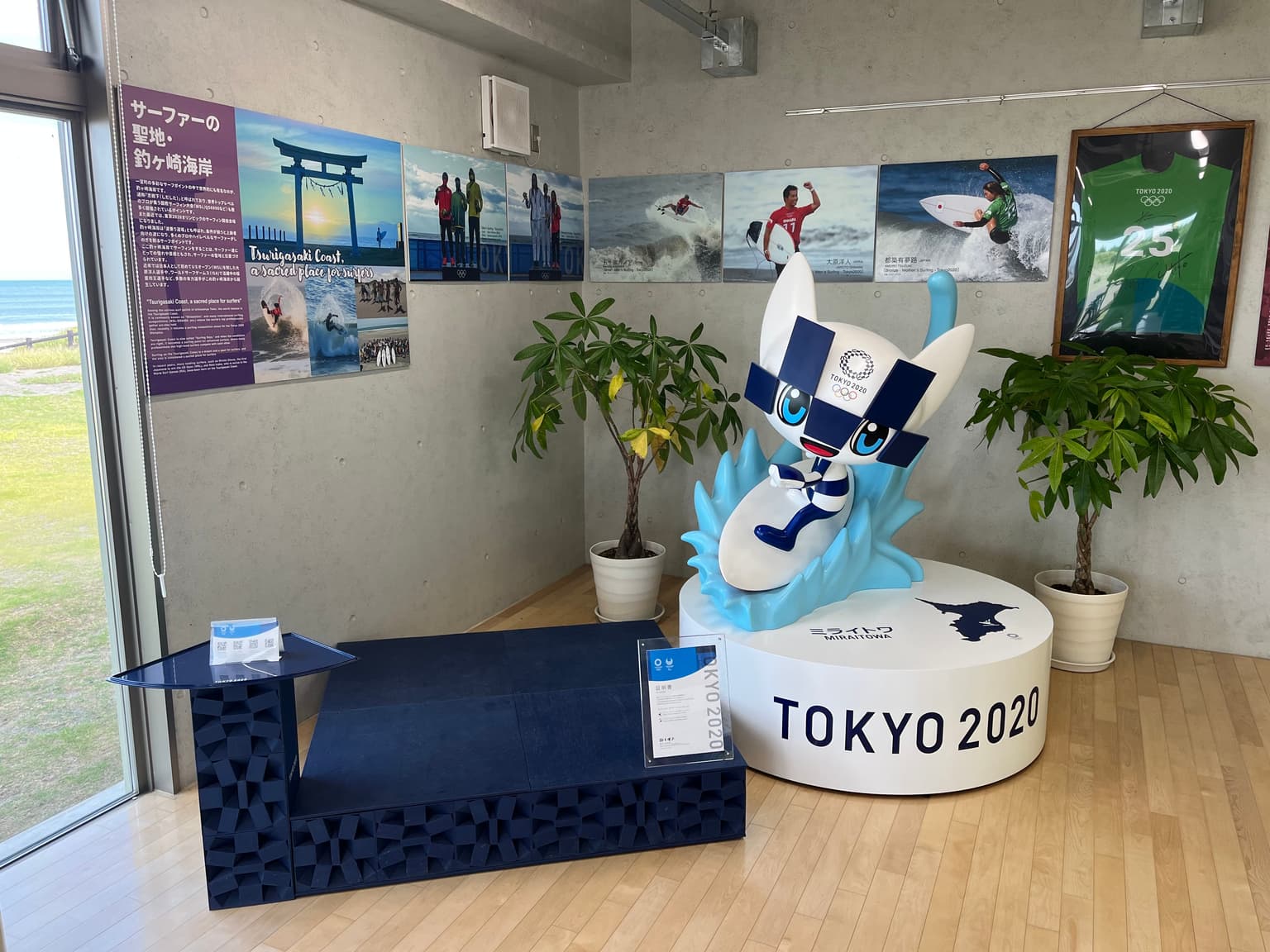 釣ヶ崎海岸は東京2020オリンピックのサーフィン競技会場であり、案内所ではオリンピック公式マスコットキャラクター、出場選手のサイン入りサーフボード、実際に使用された表彰台などが展示されている。