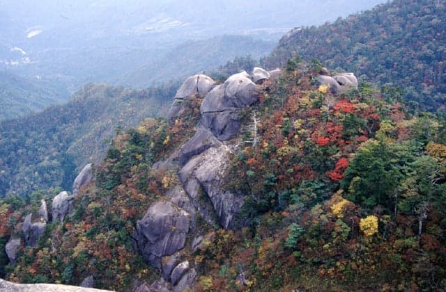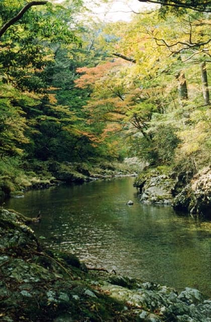 藤河内渓谷は、祖母・傾国定公園内に位置するし、県境の夏木山(1,386m)に源を発し、およそ8km続く渓谷です。この藤河内渓谷の起点が「観音滝」。落差は約73.4m、冬には凍りつくこともあります。