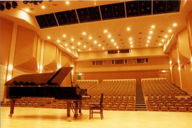 平成6年にオープンした文化ホールで、両翼を広げ、悠々と大空を飛んでいる鷹をイメージした建物。優佳良織工芸館織元の木内綾さんにより、ナナカマドのユーカラ織りをイメージしてデザインされた舞台どん帳と、座席全502席(うち3席は取り外し車椅子2席)を備えています。また可動式反響板を有する多目的に利用でき、502の固定席と充実した設備を備え、年間を通じ音楽・演劇など、さまざまな分野の公演などに利用されています