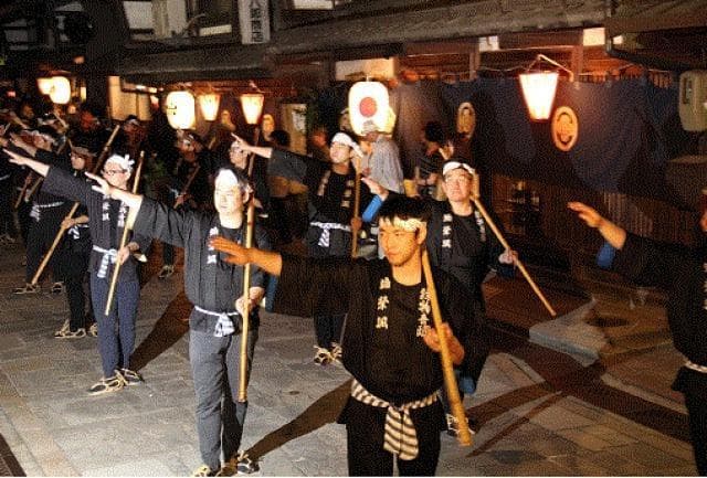毎年6月19・20日に行われる、加賀前田家2代当主前田利長の遺徳を偲び、高岡鋳物の繁栄を祈念するお祭り。6月19日は、提灯の灯火が揺らめく中、1,000名を越える踊り手による流し踊りの大絵巻が金屋町一帯に繰り広げられ、高岡鋳物作りの作業歌「弥栄節(やがえふ)」が響き渡ります。