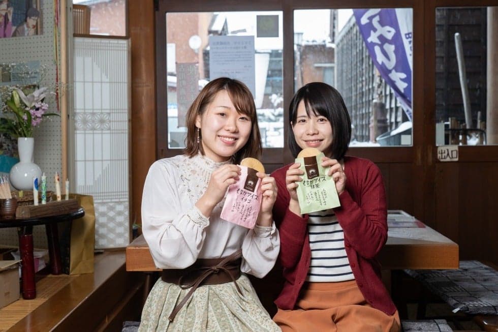 飛騨市古川町三之町にある「飛騨古川さくら物産館」は、飛騨の工芸品、銘菓、名産加工品が何でも揃う品揃えで観光客にも人気の物産館です。おすすめは、牧成舎のもなかアイス。オーブンで軽く焼いて食べるのがオススメ!サクサクのもなかと冷たいアイスの相性は抜群です。甘さ控えめで大きいサイズでもペロリと食べられちゃいます。また、組みひも体験をはじめ、様々な体験をすることができます。お土産を選んだり、体験をしたりと、飛騨古川の観光の際には、ぜひお立ち寄りください。
