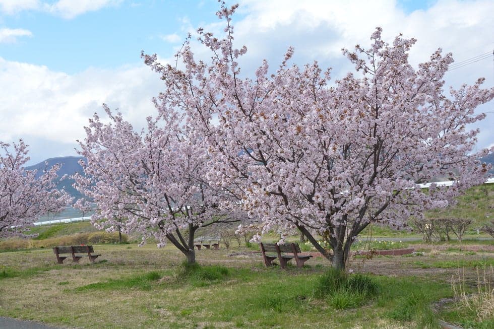 河川公園は夜間瀬橋下流、緑地公園は夜間瀬橋上流戸狩地域側にあります。