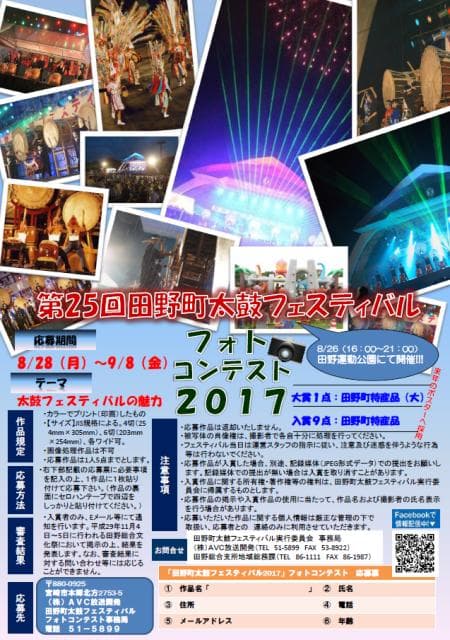 - 田野町太鼓フェスティバル実行委員会事務局 (田野総合支所 地域市民福祉課内)