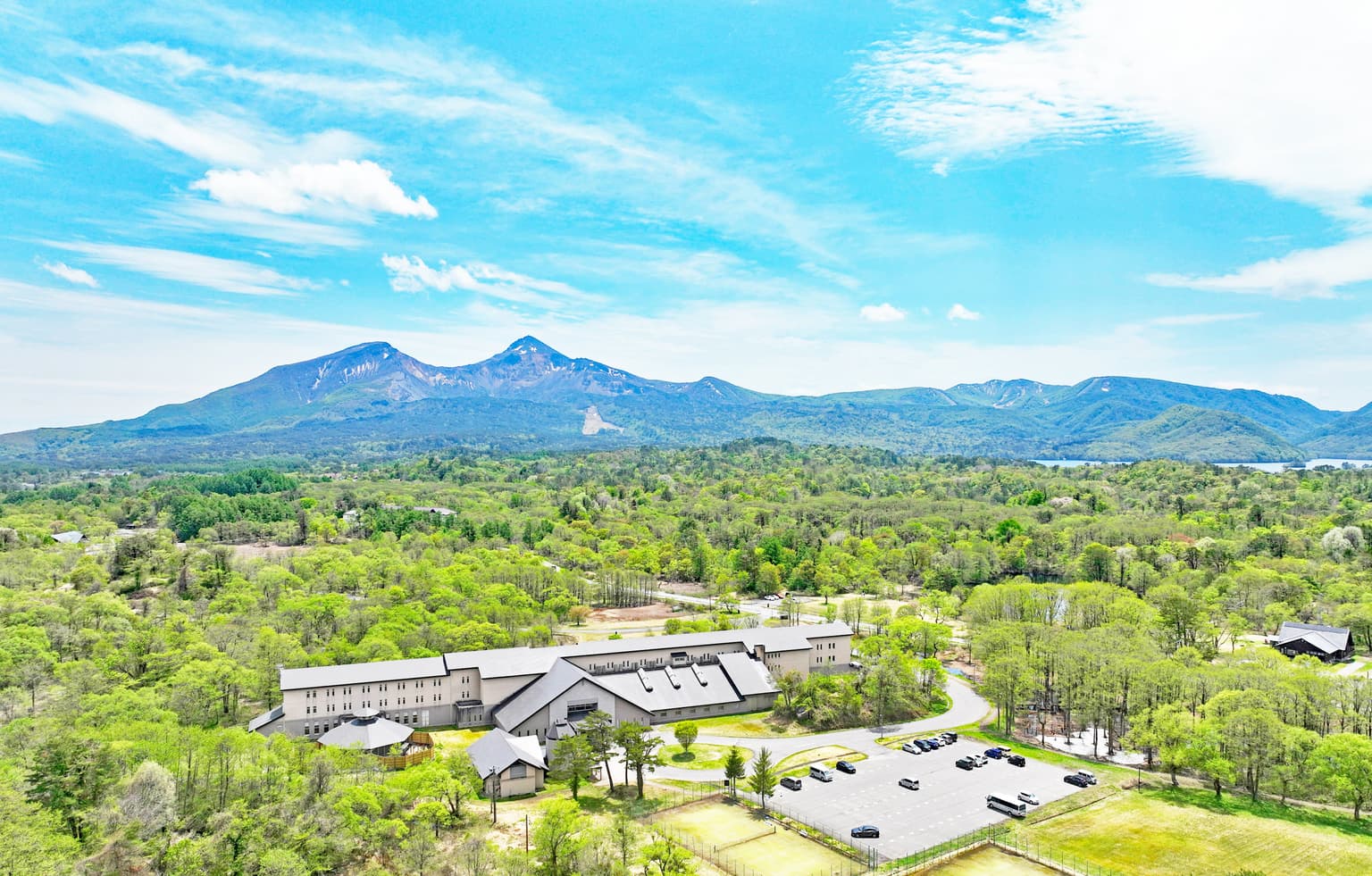 桧原、小野川、曽原の3つの湖に囲まれた裏磐梯の中心にある宿泊施設。本館、キャンプ場、多目的ホール、テニスコート、自然遊歩道、クロスカントリースキーコースなどがある。これらのレクリエーションの他、体験学習もでき、起き上がり小法師の絵付け体験、キャンプファイヤー、飯ごう炊飯など季節に応じて体験できる(要予約)。登山やスキーにも。