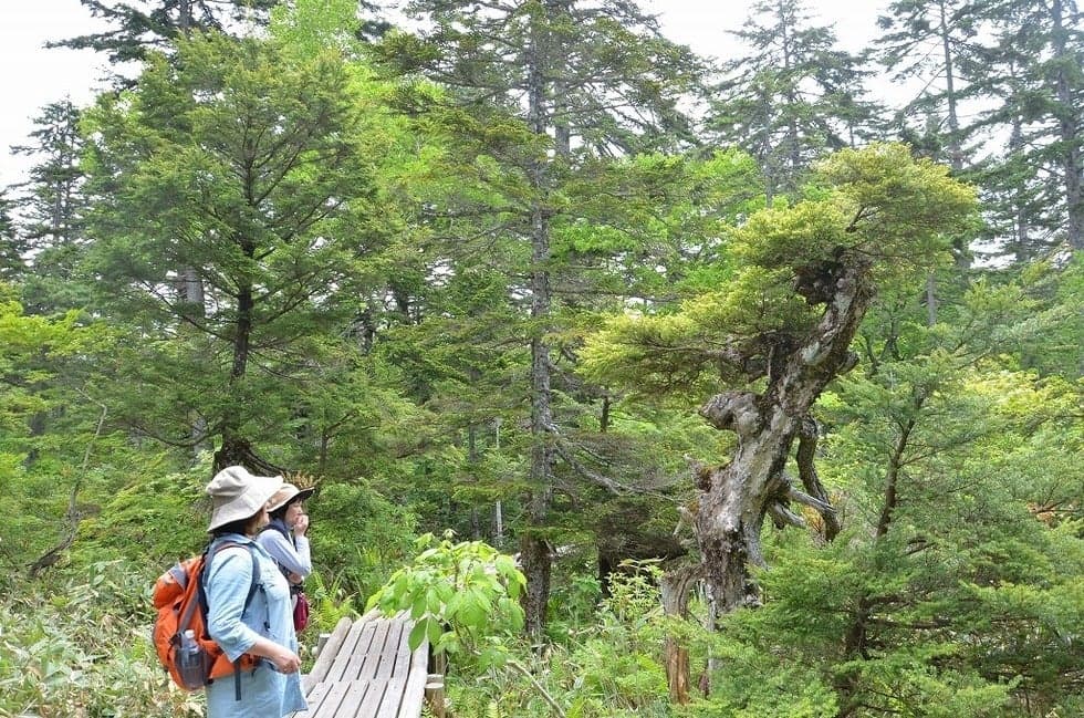 【ご注意】○深洞湿原エリアは、一般開放されていないため、入山には「入山許可」が必要となります。○湿原周辺への林道は閉鎖されており、一般車両は通行できません。深洞湿原・原生林は、トウヒ、クロベ等の針葉樹林、ミズナラやトチノキの巨樹、 ブナの原生林が広がる森です。遥かな時を経て循環するこの森では、自然の営みに柔軟かつ力強く 立ち向かっている木々の造形美、季節ごとに変化するその壮大な美しさと力強さが魅力です。標高約1500m付近には、トウヒ・クロベ・オオシラビソなどの亜高山帯の針葉樹の原生林が見事に残っているほか、その原生林が、ブナ・ミズナラの広葉樹林よりも標高が低いところにあるという通常の森林分布との逆転現象が見られる、不思議な森です。また、自然の厳しさに柔軟かつ力強く立ち向かっている木々の造形美、倒木更新から伝わる命の循環など、森の時間的経過や大自然の力強さがみられるのも深洞湿原・原生林の大きな魅力です。