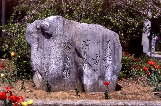 作家・村上元三氏原作のNHK大河ドラマ「源義経」(昭和41年放送)の中で珠洲市が舞台として取り上げられた。村上氏は何度も珠洲市を取材に訪れ、その記念として本人直筆の歌碑が建てられた。「義経は 雪に消えたり 須々の笛」