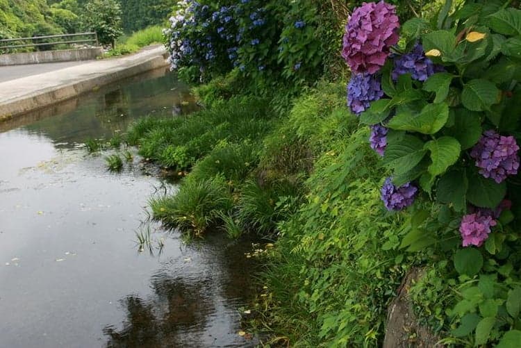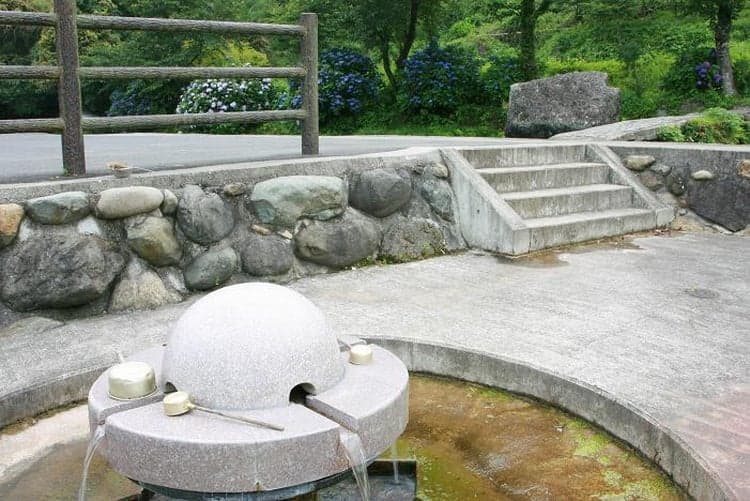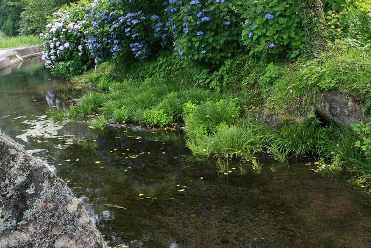 透明度の高さが魅力で、おもに農業用水として使われています。駐車場に車を停めてあぜ道を200mほど歩いたところに、この素朴な湧水は存在します。場所は「鳴瀧湧水」から、さらに上流に2kmほど進んだところにあります。