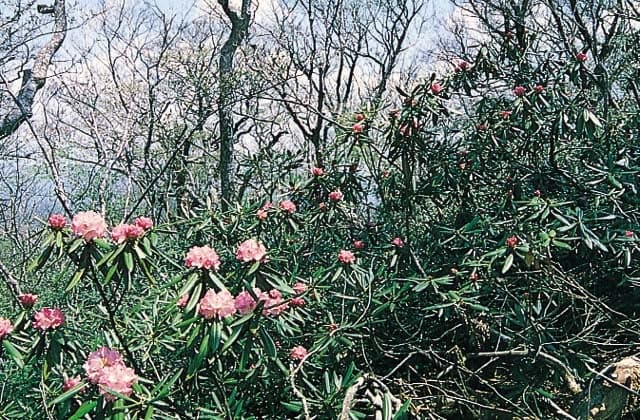 2連の吊橋は「あやとり橋」と「しゃくなげ橋」と名づけられ、親子橋として秋の渓谷に美しい姿を写します。昔は竹・木材搬出用のワイヤーなどで作られており、地元の生活道として使用されていました。現在は大きなワイヤーロープと地元の杉や栗の木を使って作られています。