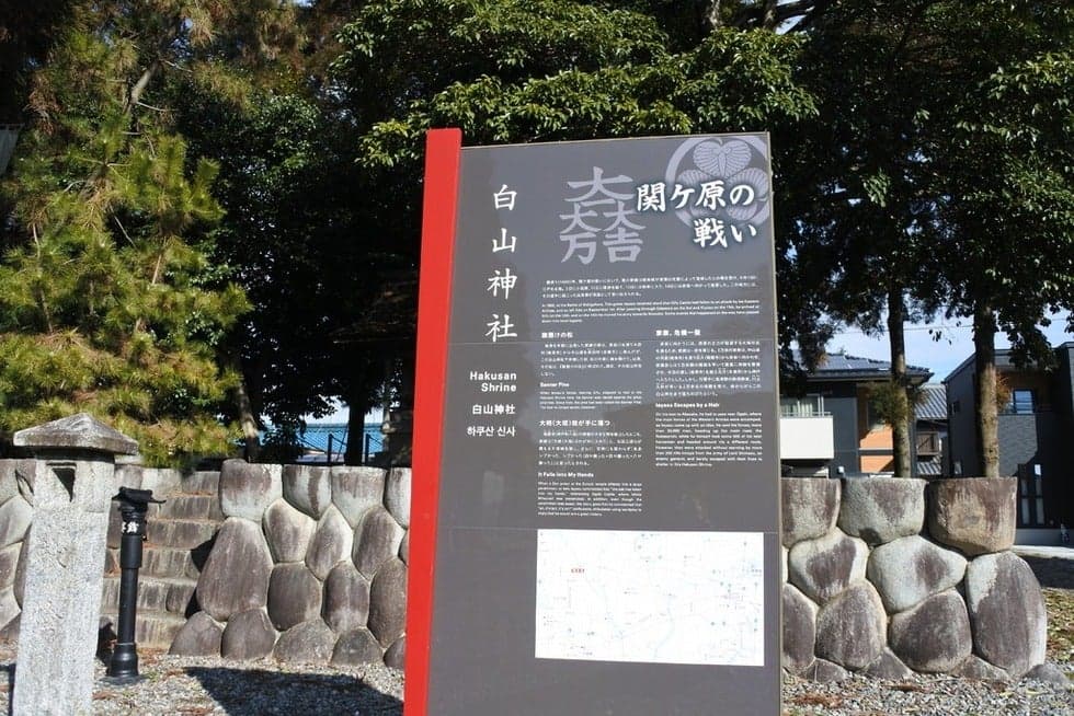 慶長5年(1600年)9月14日、岐阜から赤坂に向かった徳川家康公は、神戸の白山神社で休憩した折、松の大樹に旗を懸けたところから、その松は「旗懸けの松」と呼ばれるようになりました。また、そのとき神戸町八条の禅宗「瑞雲寺」の住職が大きな柿を献上したところ、家康公は、石田三成公らが籠もる大垣城を指して、「大柿(大垣)はわが手に入れり」と喜んだといいます。