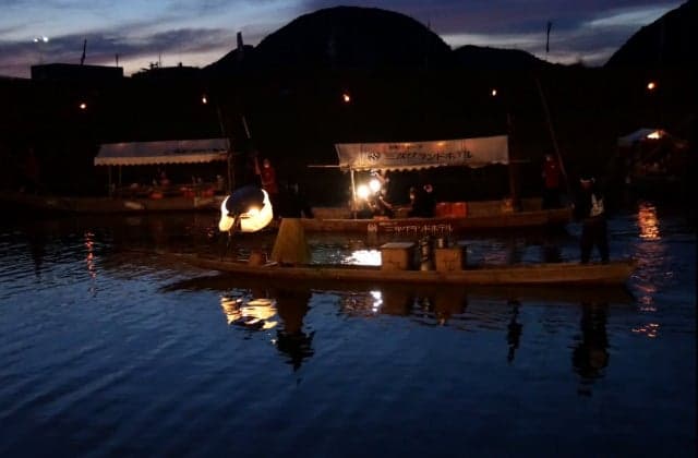 鵜舟と遊覧船が併走する回遊方式のため鵜飼を間近でダイナミックな鵜飼を楽しむことができます。