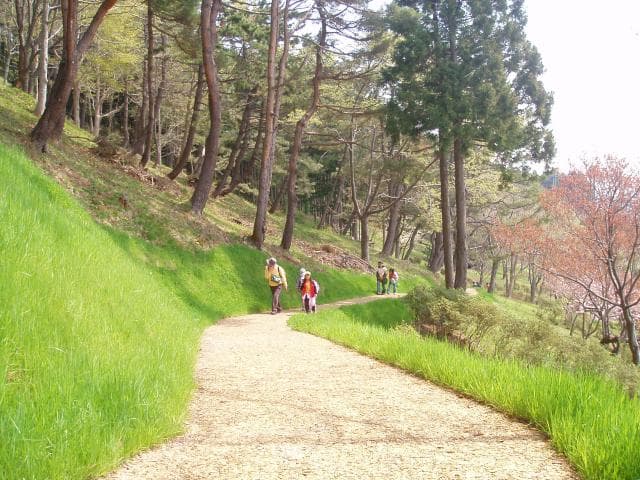 遊歩道の整備を行ない、気軽に散策出来るようになりました。薬師山・萩山を背にした丘陵地区には、野球場、テニスコート、グラウンドなどの各種スポーツ施設、遊具公園があり、家族や仲間が楽しむ憩いの場となっています。春には芝桜が薬師山を彩ります。