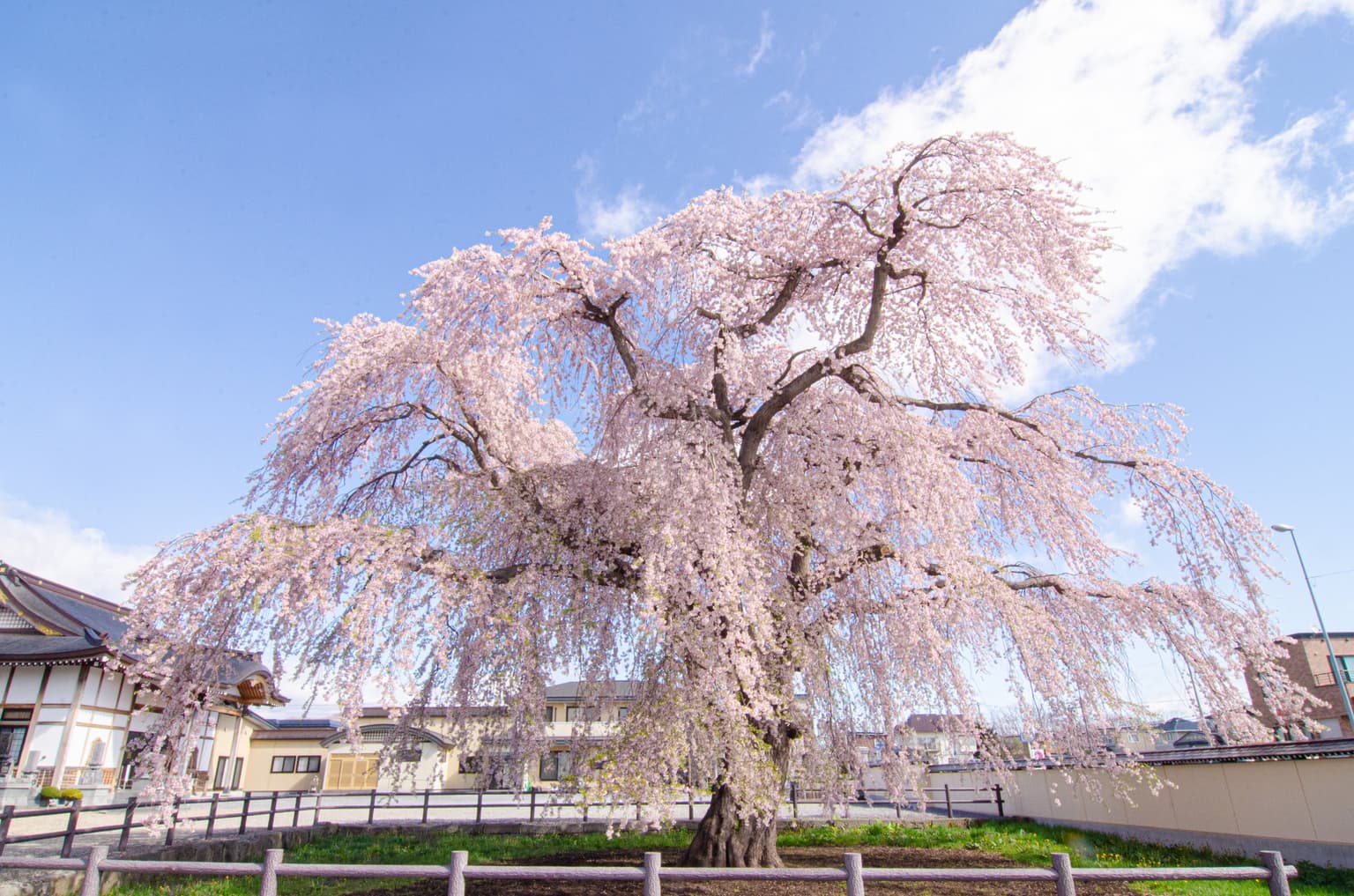 樹齢およそ300年といわれる道内最大級のしだれ桜。高さ12m程で、垂れ下がった枝いっぱいに花が咲き、これほど見事なしだれ桜は珍しいと言われています。