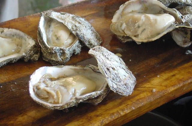 飯岡の海域は,太平洋に面し荒波にもまれ塩分濃度が濃く,プランクトンが豊富なためカキの身が大きく夏場が旬です。
