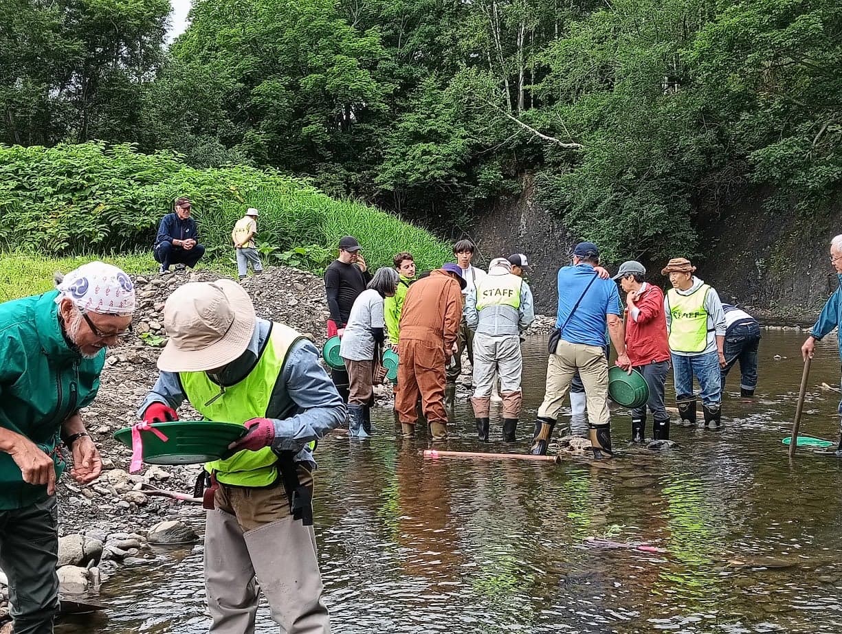 かつて、ゴールドラッシュに沸いた時代がある当地域ならではの自然アクティビティです。中頓別町内を流れる「ペーチャン川」では、なんと今でも砂金を採取することができます。夏場の1ヶ月間は管理人が常駐し、道具の貸し出しを行っているので、手ぶらで砂金掘り体験を楽しめます。