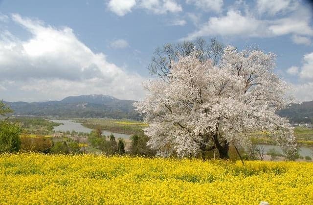 飯山に春の訪れを告げる風物詩。約13haもの広大な敷地内に、黄金色の菜の花がいちめんに咲き誇る中、「朧月夜音楽祭」など様々なイベントが行われます。※感染防止にご配慮いただき、公園をご利用ください。