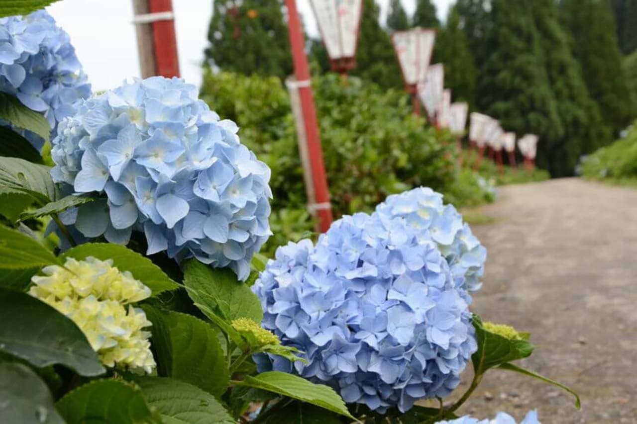 例年6月末~7月末頃(1カ月間)を「あじさい祭り」として、全国からご来園いただいております。期間中はぼんぼりが設置されます(夜間の点灯はされません)。