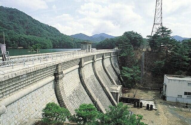 本庄水源地は,旧海軍が用水不足に対処するために,二河川の本流をさえぎって堰堤(ダム)を設け貯水池を築造したもので,大正7年(1918年)に完成した。この貯水池は,当時は東洋一といわれるほど大規模なもので,これにより軍用の水が呉市に分与されることとなり,市が建設した平原浄水場から大正7年(1918年)4月1日に市民給水を開始した。 この施設は,重力式コンクリート造堰堤,丸井戸,第一量水井,階段からなっており,重力式コンクリート造堰堤は,堰体本体と堰頂部中央の取水塔からなっている。丸井戸は,堰堤の西側の二河川沿いに置かれており,取水した水を一時的に溜めて沈砂し,その水を送り出す役目の第一量水井へ導くものである。 「本庄水源地堰堤施設」は,石貼りの美しい外観を持ち,高い施行制度を持つ堰堤を中心に,丸井戸,量水井などの関連施設で構成されている。これらは,旧海軍土木技術の枠であるとともに鋳鉄製配管,仕切弁などに至るまで当初の姿が残り,なおかつ現役施設として呉市水道の基幹をなしている点でも価値が高いものである。