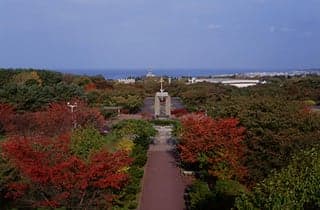ユニークな遊具施設、噴水広場や芝生広場があるほか、花の季節には約500本の桜、ツツジや藤の花が咲きます。道の駅「YOU・遊・もり」に隣接しており、物産展望プラザから噴火湾・駒ヶ岳・桜の他、天気の良い日には、羊蹄山や有珠山も望むことができます。