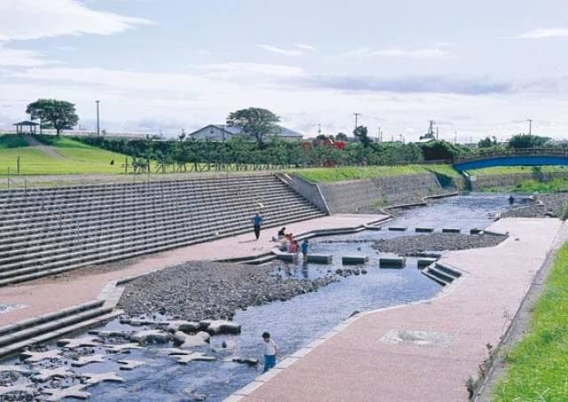 公園内には遊具や芝生広場、運動広場に加え、三保川も流れており、解放的な公園となっております。
