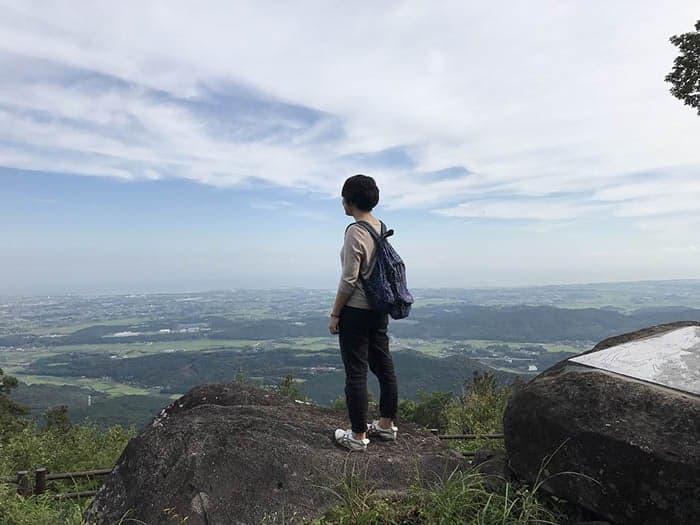 目に入るテーブル状の山は、耶馬渓(やばけい)の入口、様々な伝説を持つ巨石が群れをなす霊峰「八面山」です。約1000年前から八面山を中心に古代仏教文化が花開き、人々は周辺の岩屋に仏を安置していきました。