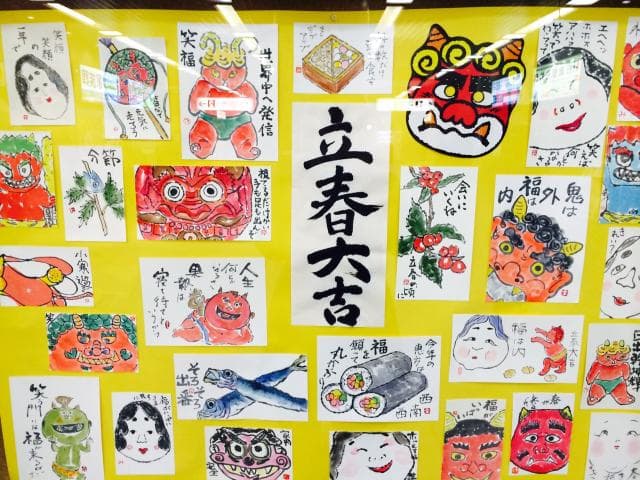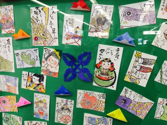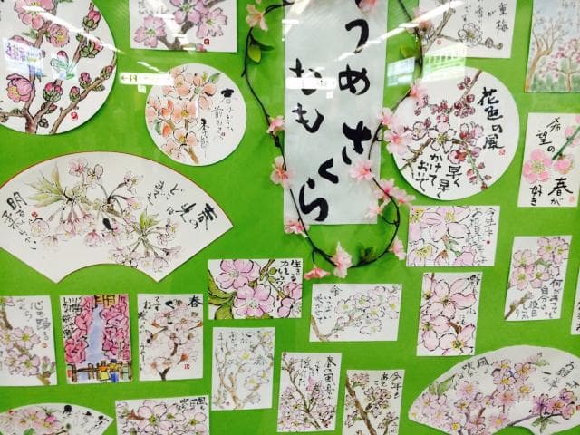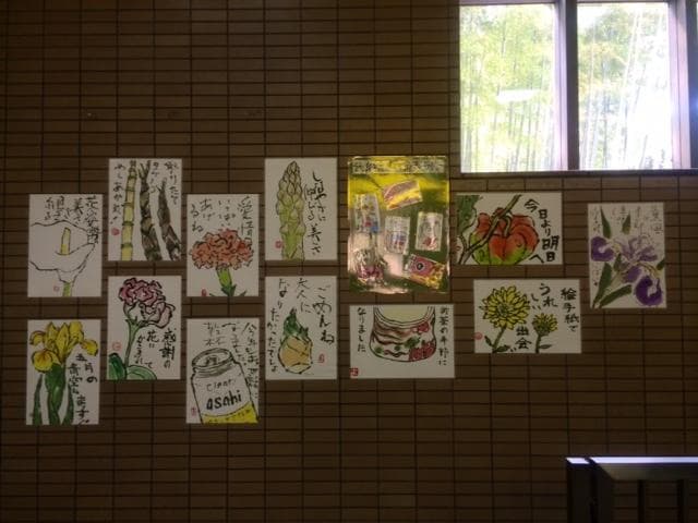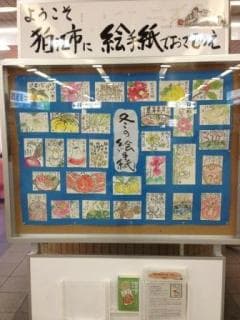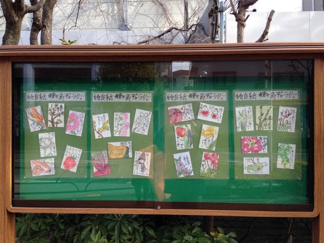 絵手紙事業を推進する狛江市では、「絵手紙街角ギャラリー」と称して、市内商店の軒先等31ヶ所に絵手紙を展示しています。