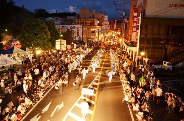 鹿屋市の夏を代表するイベントである「かのや夏祭り」。南国情緒豊かで陽気なリズムのハンヤ節に合わせ、踊り手集団が市街地を練り歩く「総踊り」は迫力満点です。終盤には、市内3か所から花火が打ち上げられます。