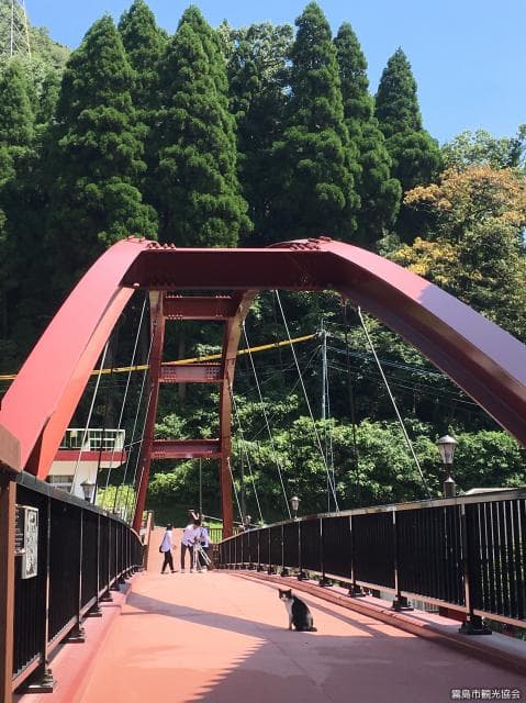 天降川左岸の牧園町と右岸の隼人町側の国道223号を結ぶ人道橋(車両通行不可)。川の両岸に温泉宿・湯治宿が立ち並ぶ様は風情たっぷり。