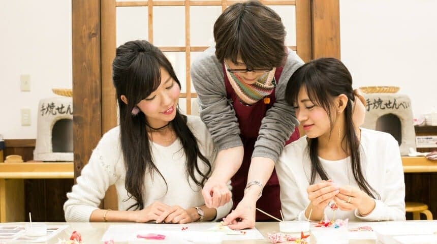 さるぼぼづくりや手焼きせんべい体験など常時10種類以上の体験がいつでも予約なしでできる【手づくり体験専門店】です。