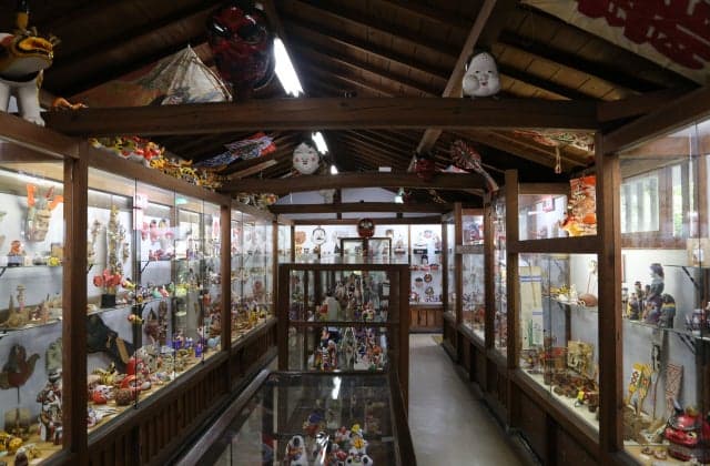 江戸時代から昭和にかけて、全国各地で作られた郷土色豊かな玩具とおもちゃ約1万点を展示。