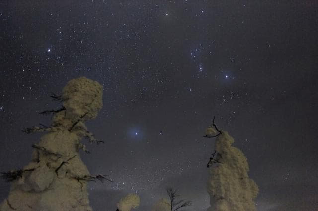 闇夜に浮かび上がる樹氷は、まさにスノーモンスター!