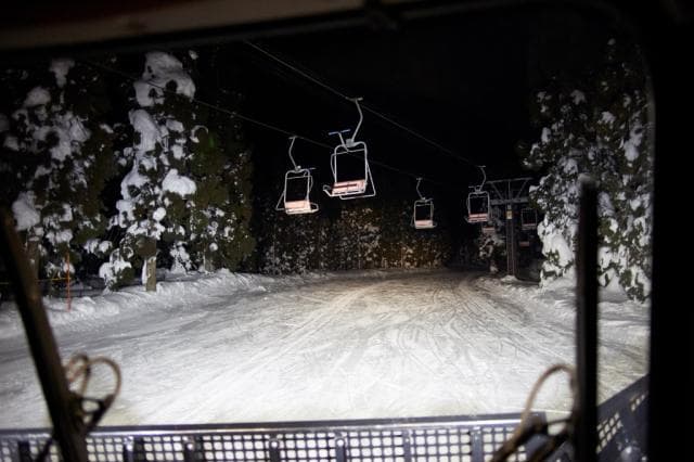 キャビン付き圧雪車で、普段見ることのできない夜の森吉山へ行くナイトツアー。