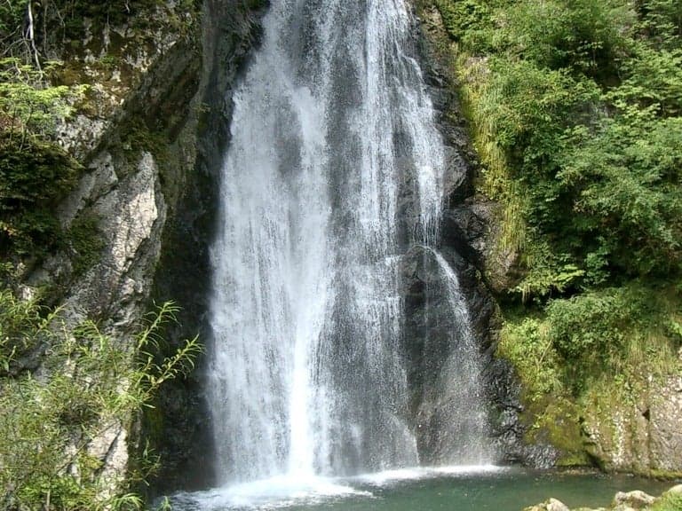 落差約25メートルのこの滝は、銚子の形に似ていることから名付けられました。昭和61年に岐阜県の名水50選に選ばれ、四季折々に変化する渓谷の美しさが楽しめます。また昔話として、江戸時代、この銚子谷に温泉が出たとき、村人は他国から殿様が温泉に入りに来るのを極度におそれ、山伏にこの温泉を冷泉に出来ないかと相談したところ、わけのないことといって21日間修験供養の結果、冷泉に変えることが出来たという話があります。