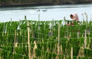 青のりはビタミンA、ビタミンB、カルシウム、鉄分などを多く含みます。そのままの原草を乾燥させたものなどがみやげ物店に並んであります。寒風の中、青のりを干す風景は、冬の四万十川の風物詩となっています。