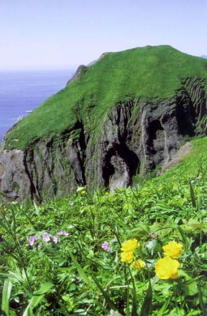 高山植物が咲き乱れ、「花の島」と呼ばれるほどの礼文島の中でも一番美しいのが、島の尾根筋にある桃の形をした桃岩付近である。この岩は海抜250mと低いが緯度が高いため約300種の高山植物が群生している。レブンウスユキソウ、レブンコザクラ、レブンソウなど礼文の名のついた花も多い。
